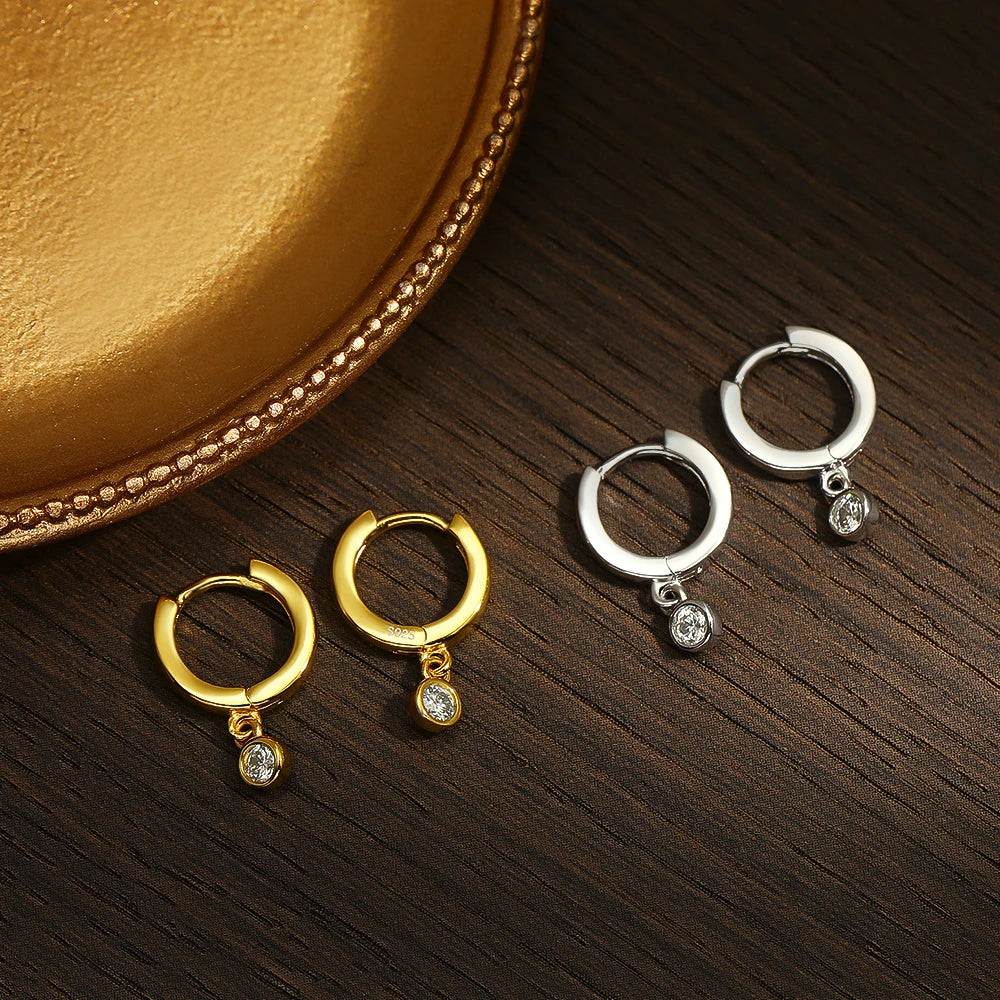 D VVS1 Round Moissanite Pendant Earrings for Women, Sparkling Fine jewelry S925 Sliver Plated White Gold Hoop Earring