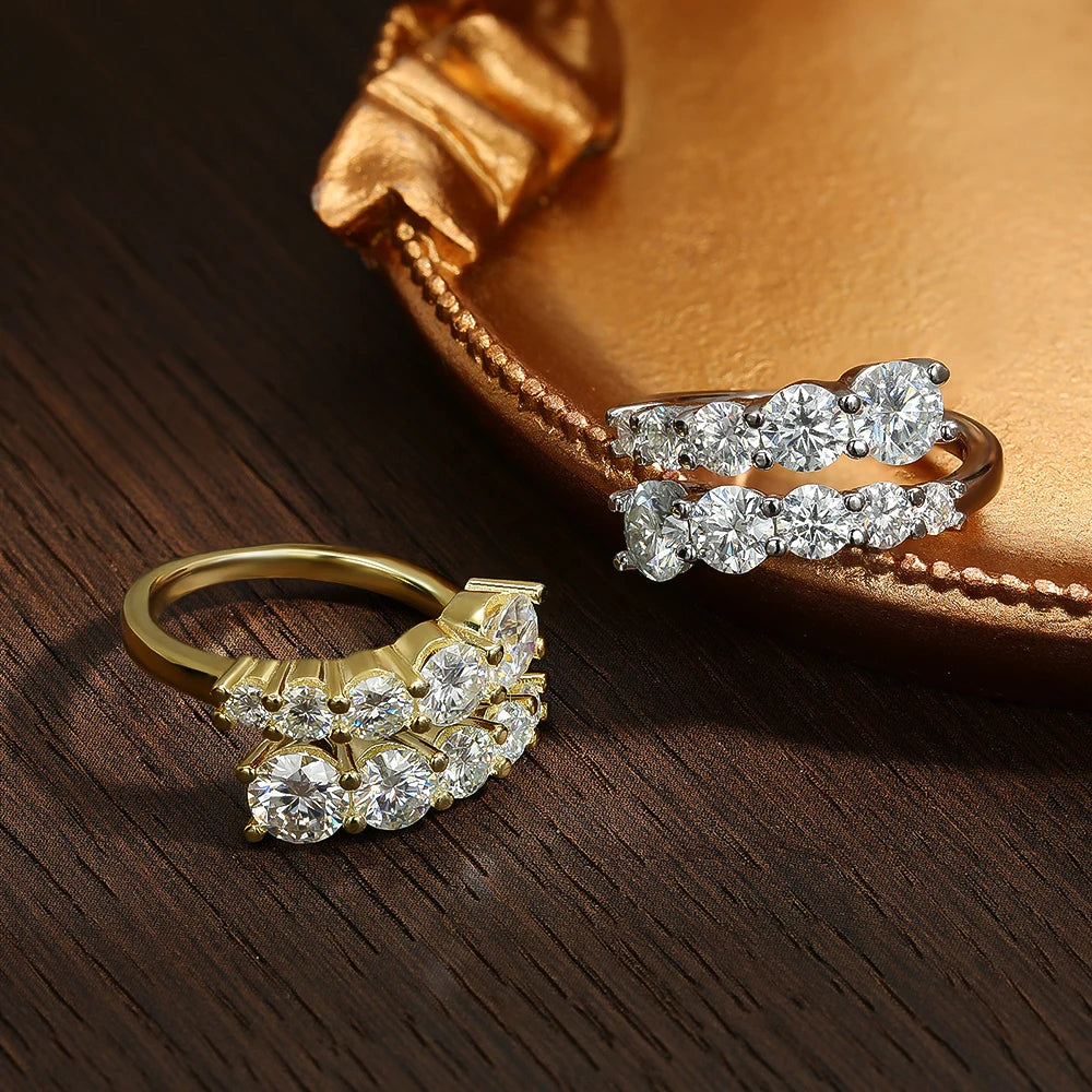 Elevate your elegance with the Sparkling Moissanite Diamond Band. This meticulously crafted ring showcases an exquisite 8-heart, 8-arrow round-cut Moissanite center stone, featuring D color and VVS1 clarity, delivering exceptional brilliance.